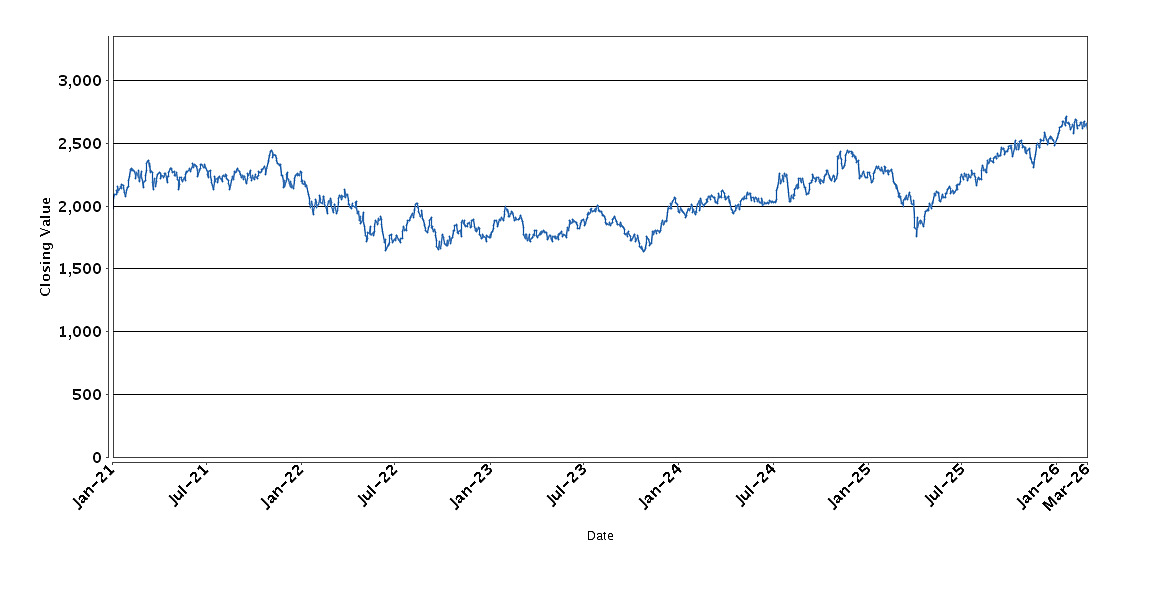The graph below sets forth the historical performance of the SPX Index based on the daily Closing Value from January 4, 2021 through March 3, 2026. We obtained the Closing Values shown in the graph below from Bloomberg Professional® service (“Bloomberg”). We have not independently verified the accuracy or completeness of the information obtained from Bloomberg.