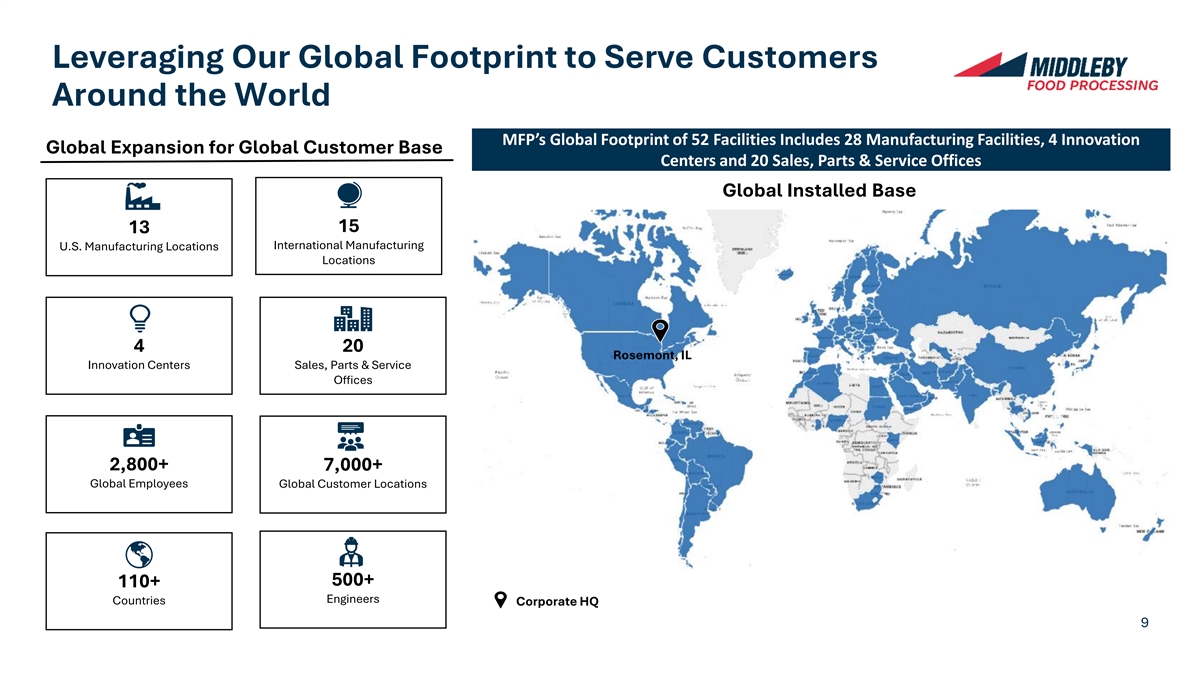 Leveraging Our Global Footprint to Serve Customers Around the World MFP’s Global Footprint of 52 Facilities Includes 28 Manufacturing Facilities, 4 Innovation Global Expansion for Global Customer Base Centers and 20 Sales, Parts & Service Offices Global Installed Base 15 13 International Manufacturing U.S. Manufacturing Locations Locations 4 20 Rosemont, IL Innovation Centers Sales, Parts & Service Offices 2,800+ 7,000+ Global Employees Global Customer Locations Global Coverage Allows us to better Serve our Customers 500+ 110+ Engineers Countries Corporate HQ 9