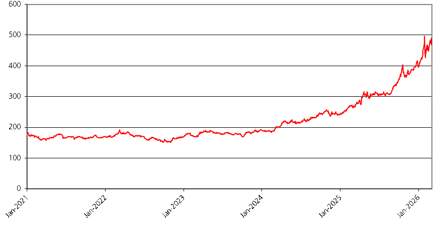 We obtained the information regarding the historical performance of the reference asset in the graph below from Bloomberg, without independent review or verification. The graph below illustrates the performance of the reference asset from January 1, 2021 through March 3, 2026. The closing price of the reference asset on March 3, 2026 was $468.14.
