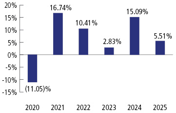 This table compares the Fund’s average annual total returns for the periods ended December 31, 2025 to those of an appropriate broad-based index and a more narrowly based index with characteristics relevant to the Fund’s investment strategies.