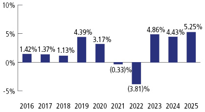This table compares the Fund’s average annual total returns for the periods ended December 31, 2025 to those of an appropriate broad based index and more narrowly based indexes with characteristics relevant to the Fund’s investment strategies.