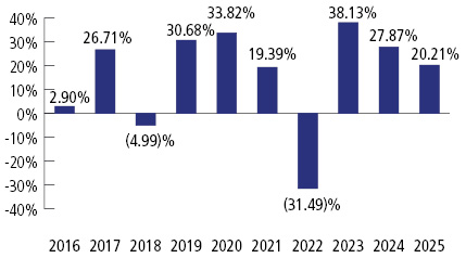 This table compares the Fund’s average annual total returns for the periods ended December 31, 2025 to those of an appropriate broad based index and more narrowly based indexes with characteristics relevant to the Fund’s investment strategies.