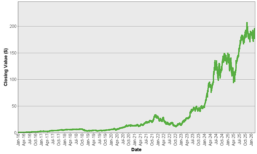 The graph below shows the closing value of NVIDIA Corporation for each day such value was available from January 4, 2016 to March 5, 2026. We obtained the closing values from Bloomberg L.P., without independent verification. If certain corporate transactions occurred during the historical period shown below, including, but not limited to, spin-offs or mergers, then the closing values shown below for the period prior to the occurrence of any such transaction have been adjusted by Bloomberg L.P. as if any such transaction had occurred prior to the first day in the period shown below. You should not take historical closing values as an indication of future performance.