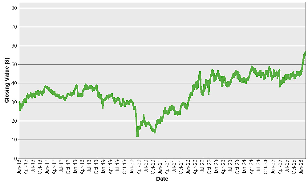 The graph below shows the closing values of the State Street® Energy Select Sector SPDR® ETF for each day such value was available from January 4, 2016 to March 4, 2026. We obtained the closing values from Bloomberg L.P., without independent verification. You should not take historical closing values as an indication of future performance.