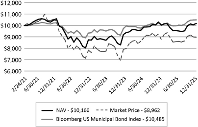 The graph below illustrates the growth of a hypothetical $10,000 investment assuming the purchase of common shares at the closing market price (NYSE: RFMZ) of $20.00 on February 24, 2021 (commencement of operations) and tracking its progress through December 31, 2025.