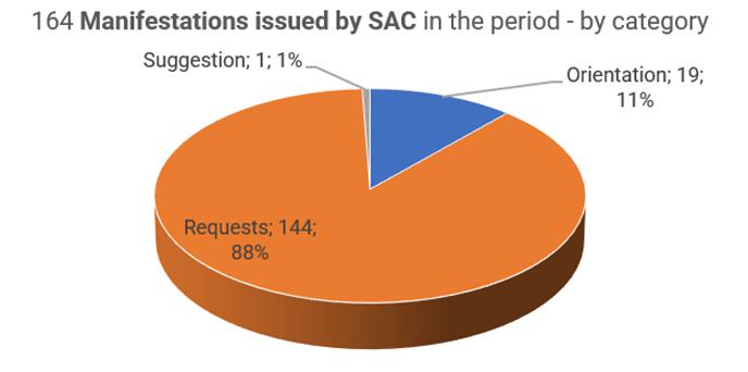 During this period, the SAC issued 164 Manifestations, which represents an average of 2.9 manifestations per meeting. Manifestations can be requests, guidelines and suggestions, as defined in the SAC operating standard: