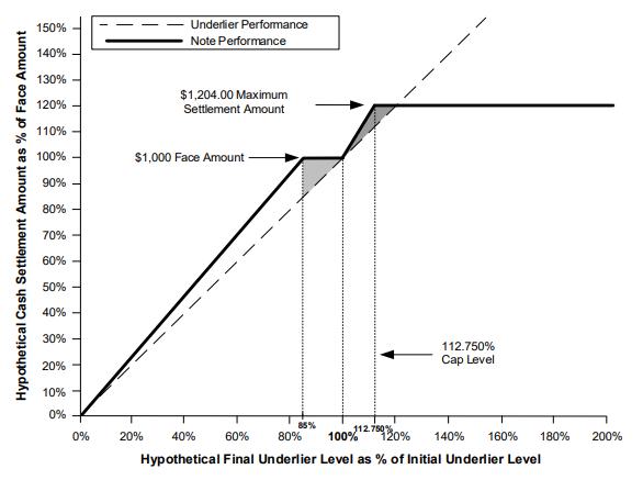 The appreciation potential of the notes is limited by the Maximum Settlement Amount of $1,204.00 per note, or 120.400% of the Face Amount. Although the Upside Participation Rate provides 160% exposure to any increase in the Final Underlier Level over the Initial Underlier Level, because the Cash Settlement Amount will be limited to 120.400% of the Face Amount for the notes, any increase in the Final Underlier Level over the Initial Underlier Level by more than 12.75% of the Initial Underlier Level will not further increase the return on the notes.