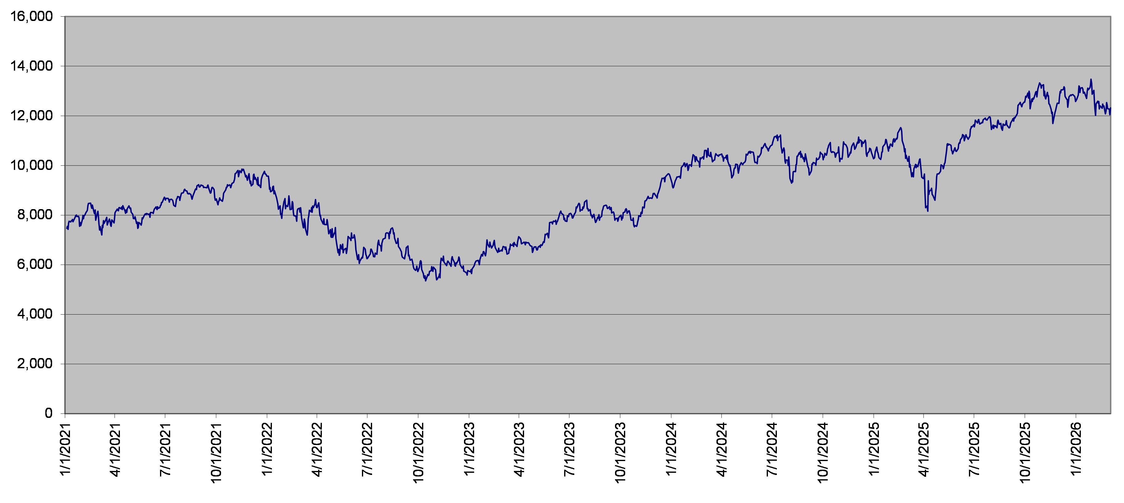 NDXT Index Daily Closing Levels January 1, 2021 to March 4, 2026 |
