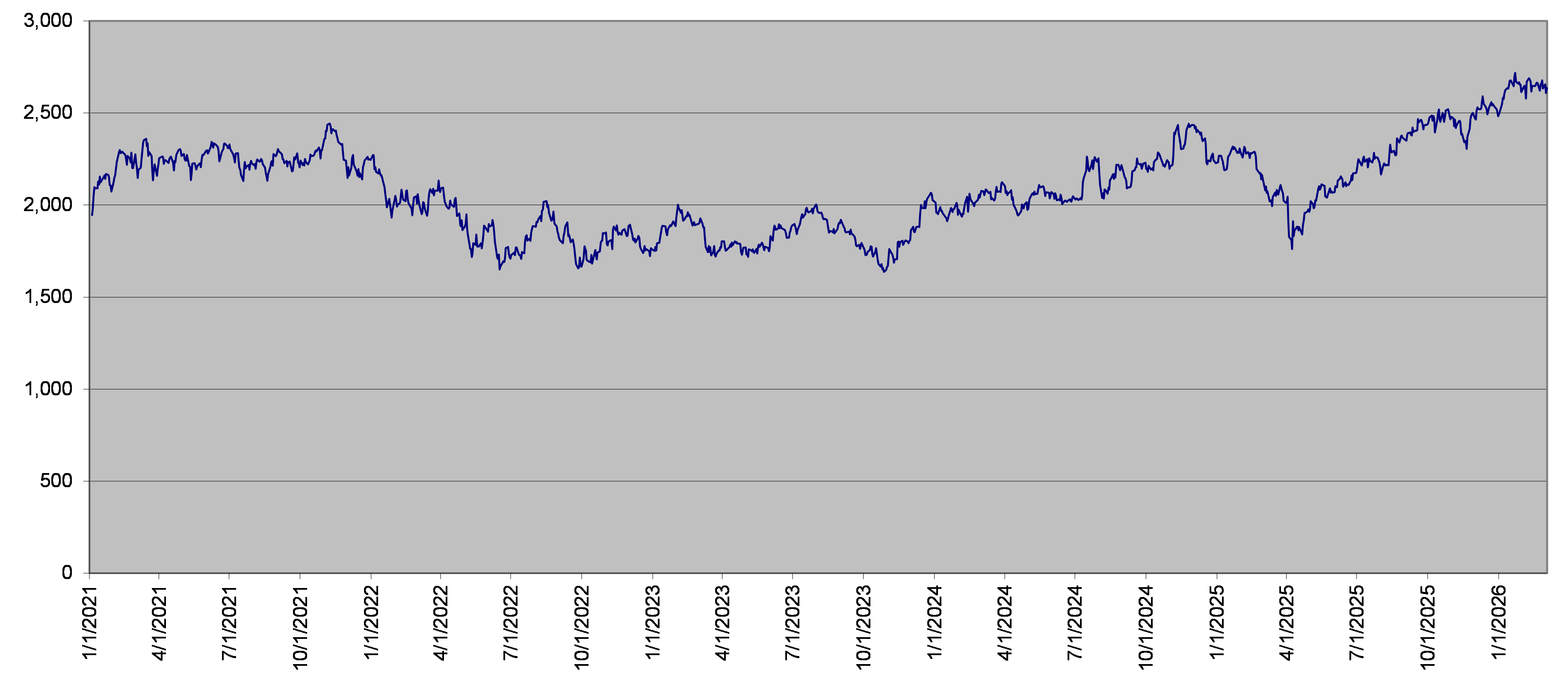 RTY Index Daily Closing Levels January 1, 2021 to March 4, 2026 |
