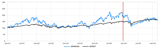 The graph below shows the performance, from January 1, 2021 through March 5, 2026, of the underlier and the S&P 500® Futures Excess Return Index.