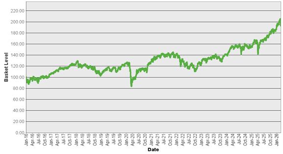 | Hypothetical Historical Basket Performance January 4, 2016 to March 5, 2026 |