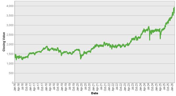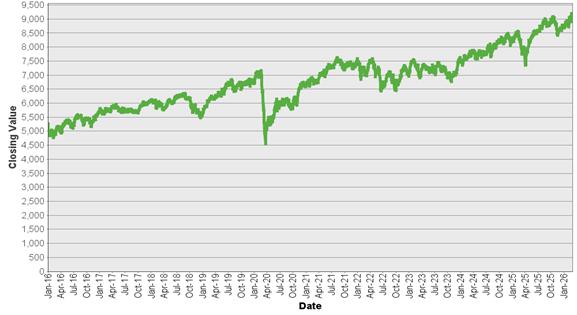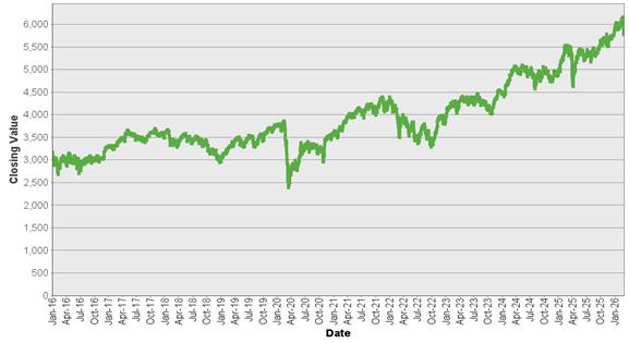 | S&P/ASX 200 Index – Historical Closing Values January 4, 2016 to March 5, 2026 |