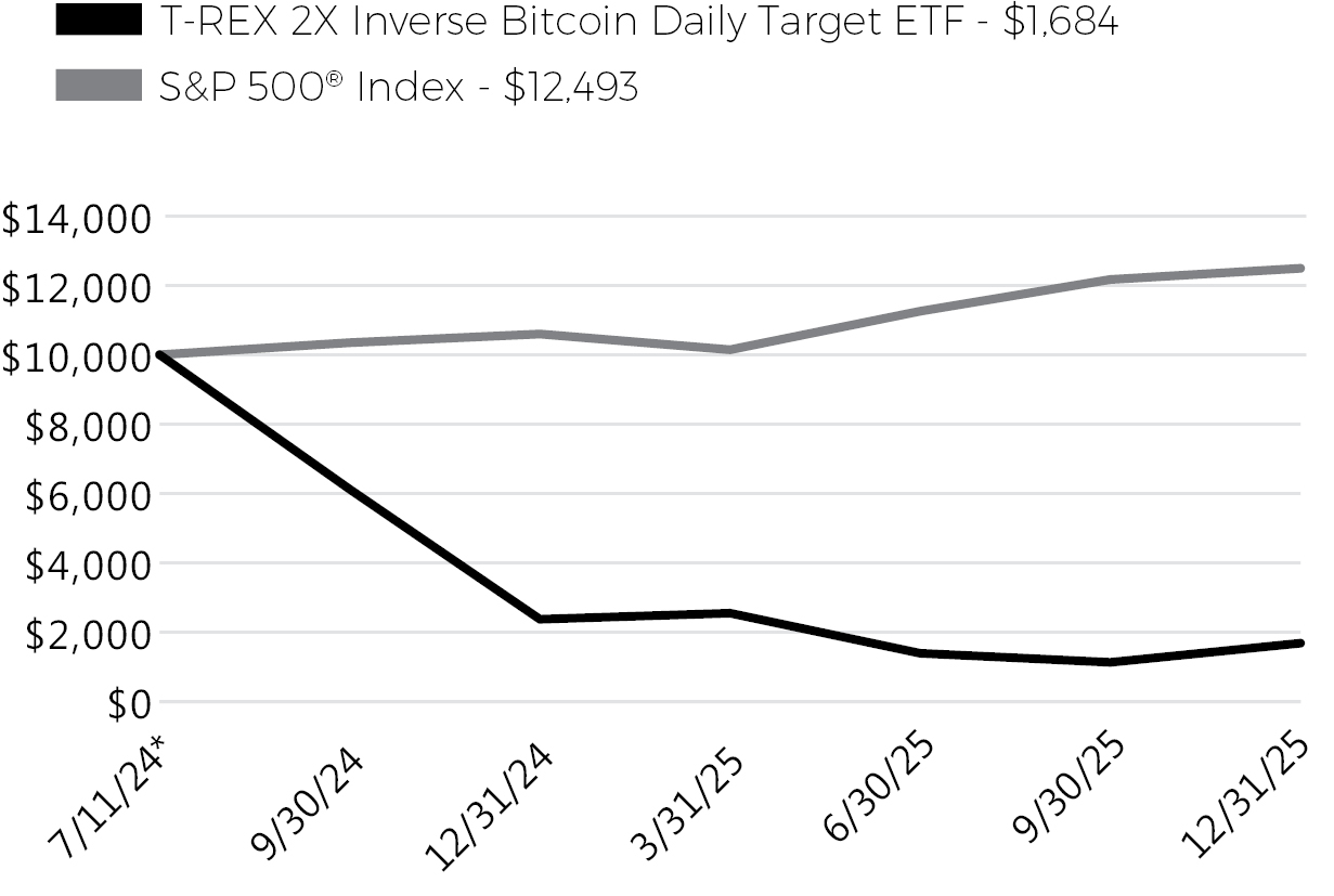 • For the period of January 1, 2025 to December 31, 2025, the T-REX 2X Inverse Bitcoin Daily Target ETF (the “Fund”) returned -29.04%.
