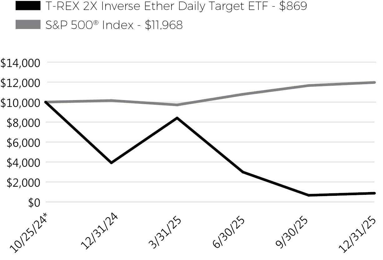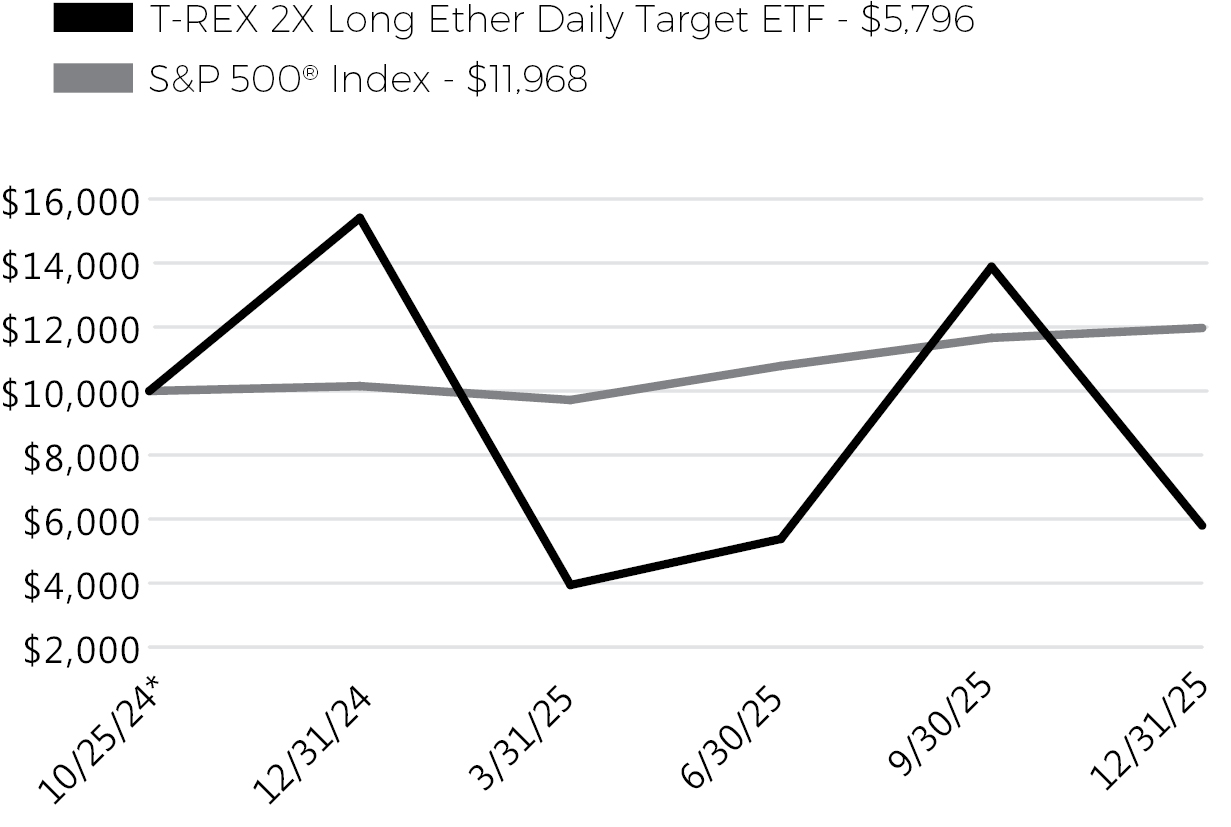 • For the period of January 1, 2025 to December 31, 2025, the T-REX 2X Long Ether Daily Target ETF (the “Fund”) returned -62.39%.