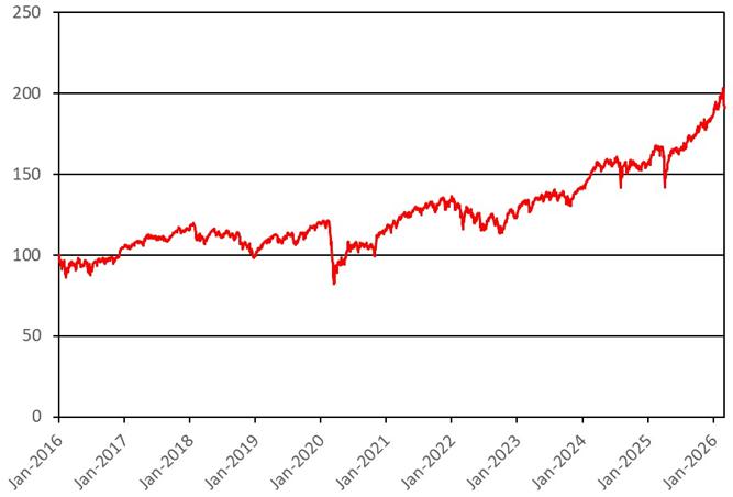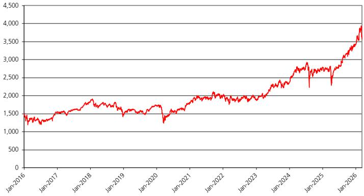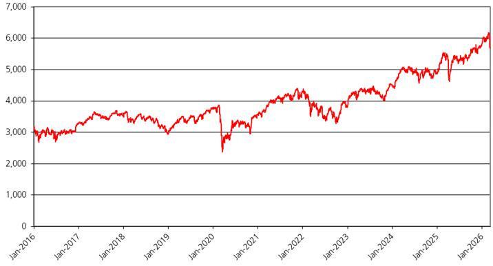 The graph below illustrates the performance of the SMI from January 1, 2016 through March 9, 2026. The closing level of the SMI on March 9, 2026 was 13,000.09.