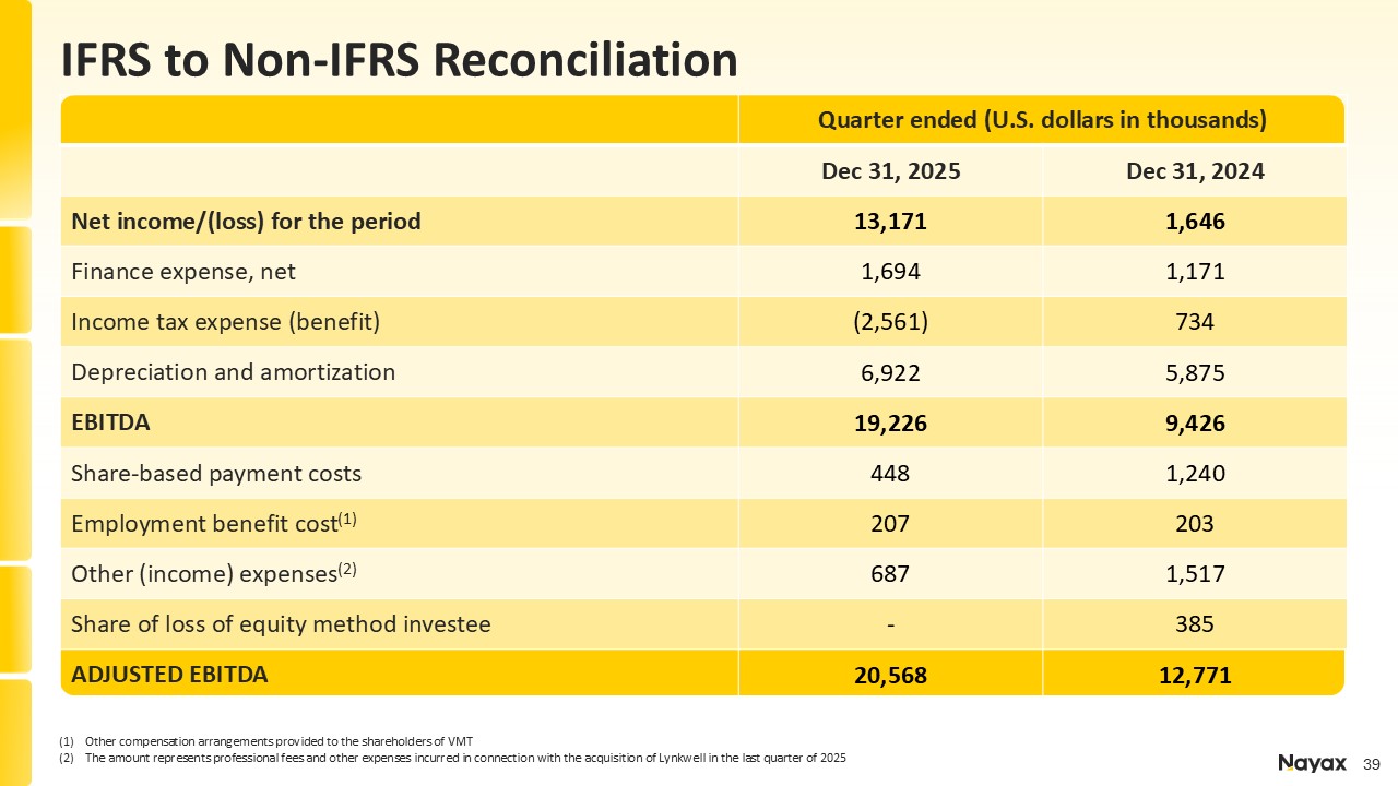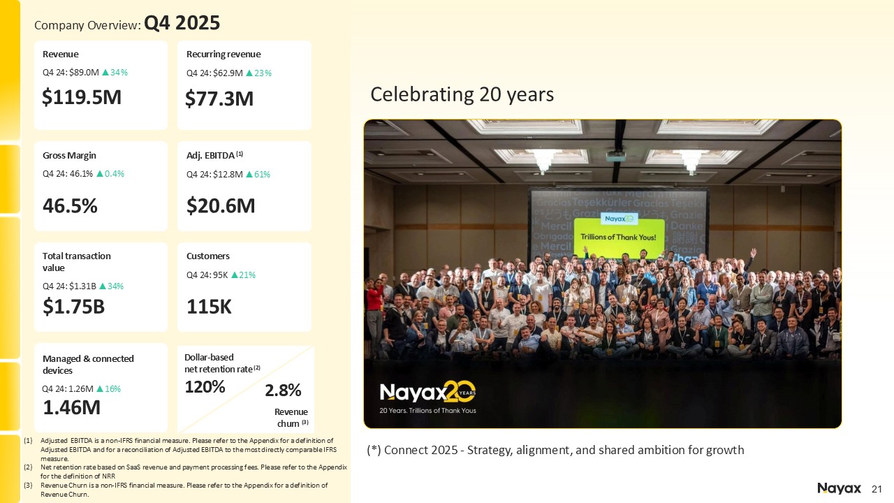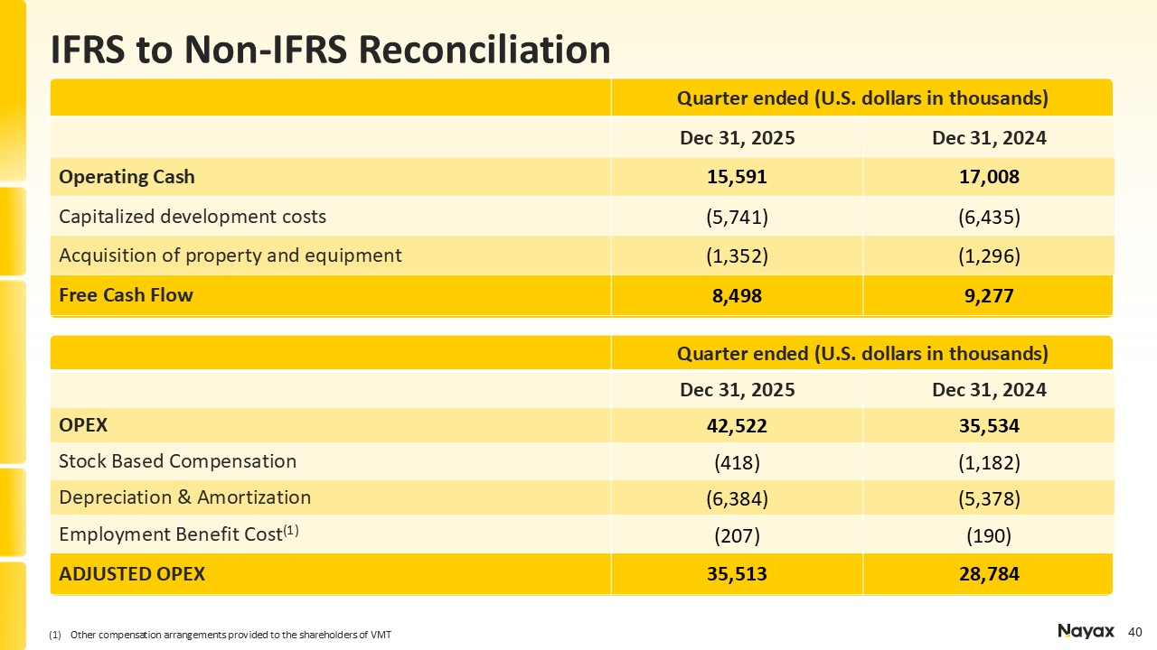 EBITDA, Free Cash Flow and Adjusted OPEX, each a non-IFRS financial measure provided to help evaluate our past results and future prospects. Please refer to the appendix for of this presentation for a definition of Adjusted EBITDA, Free Cash