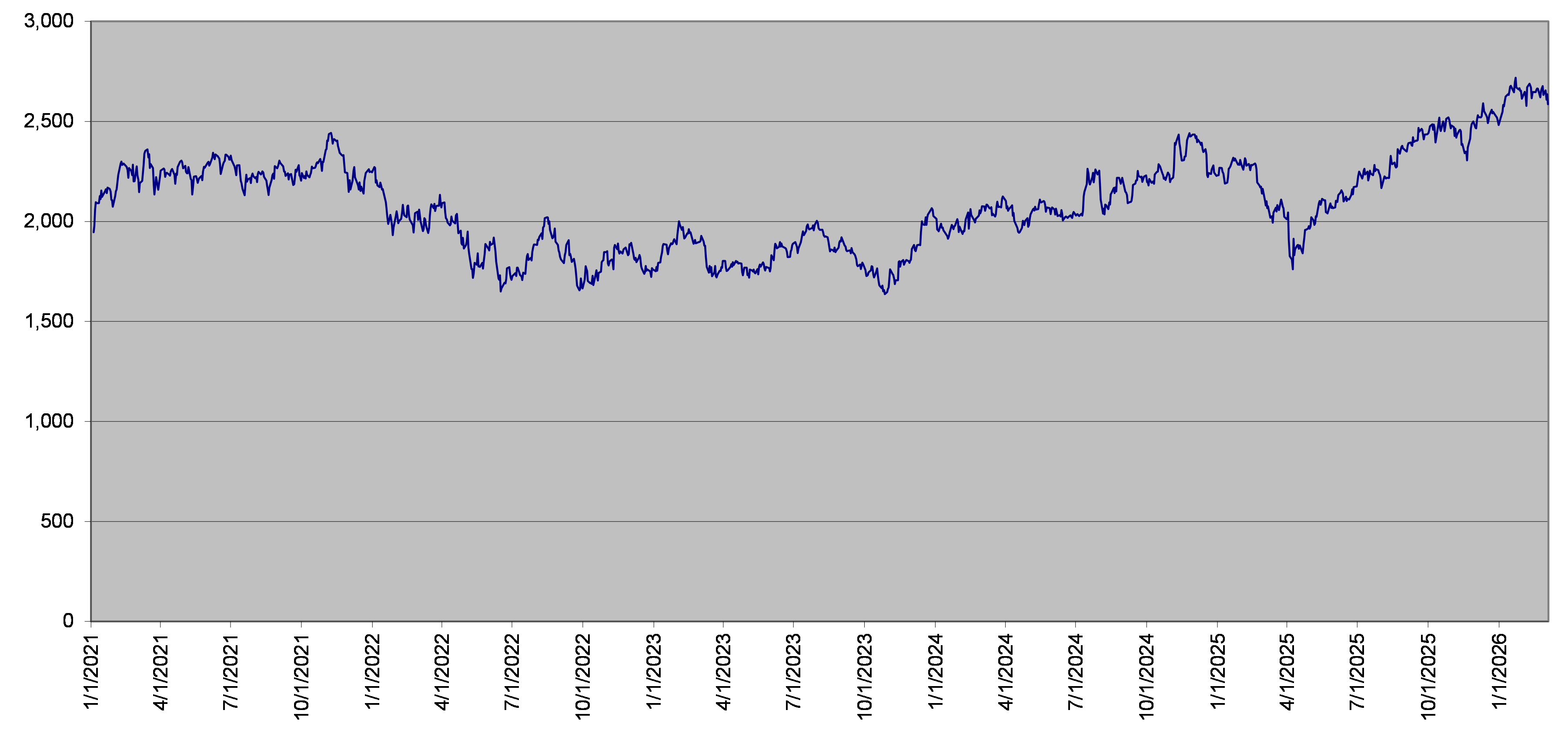 SPX Index Daily Closing Levels January 1, 2021 to March 5, 2026 |