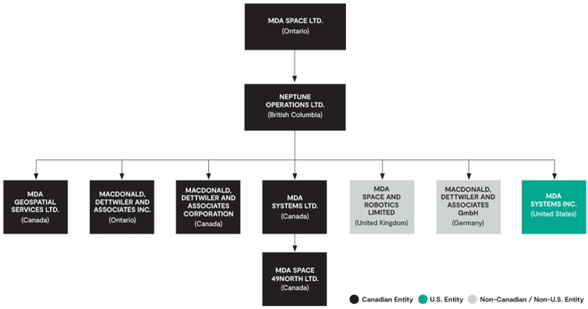 MDA Space Ltd. is a corporation incorporated under the Business Corporations Act (Ontario) (the “OBCA”) on June 2, 2020. On March 19, 2021, our articles were amended to change our name from “Neptune Acquisition Holdings Inc.” to “MDA Ltd.” On April 6, 2021, we amalgamated with 2828330 Ontario Inc., a corporation incorporated under the OBCA, as part of certain transactions undertaken in connection with the closing of the initial public offering of our Common Shares on April 7, 2021 (the “IPO”). On May 9, 2024, our articles were amended to change our name from “MDA Ltd.” to “MDA Space Ltd.”