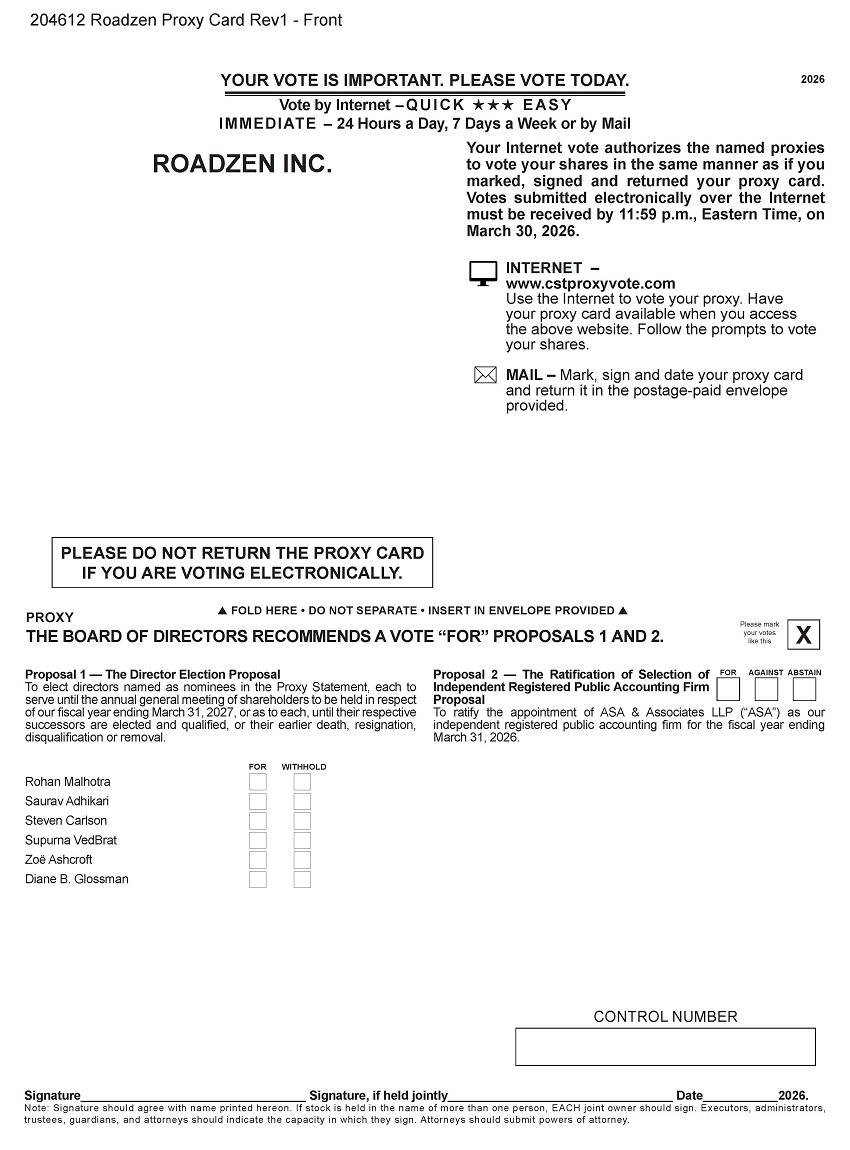 The Notice of the Annual Meeting and Proxy Statement are available at www.sec.gov and at www.cstproxy.com/roadzen/2026.