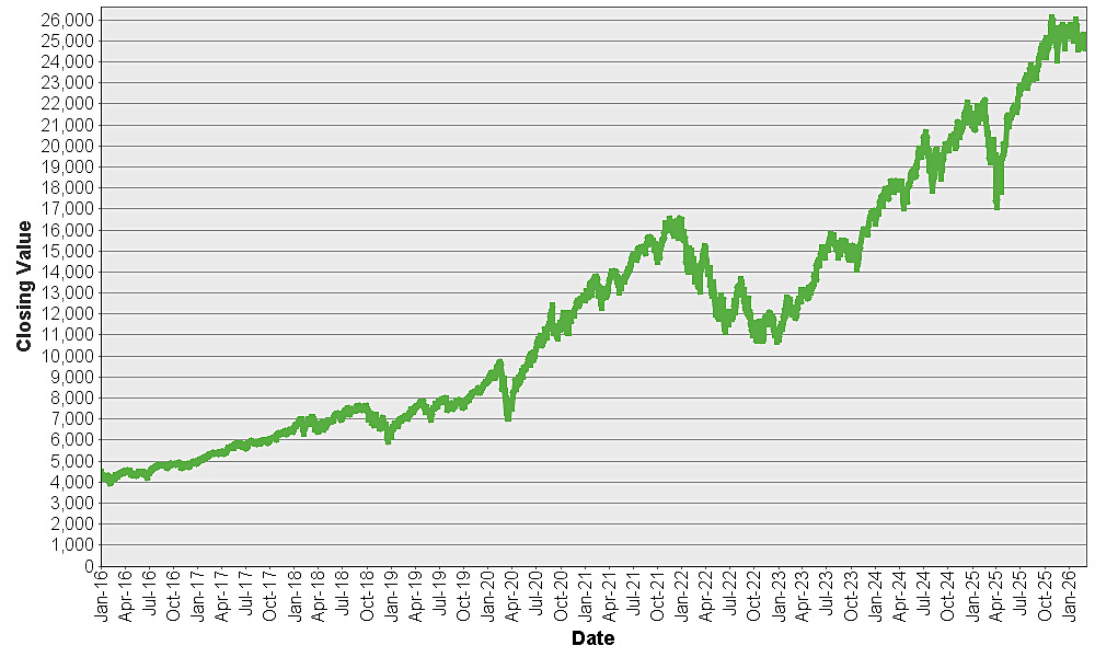 The graph below shows the closing value of the Nasdaq-100 Index® for each day such value was available from January 4, 2016 to March 9, 2026. We obtained the closing values from Bloomberg L.P., without independent verification. You should not take historical closing values as an indication of future performance.