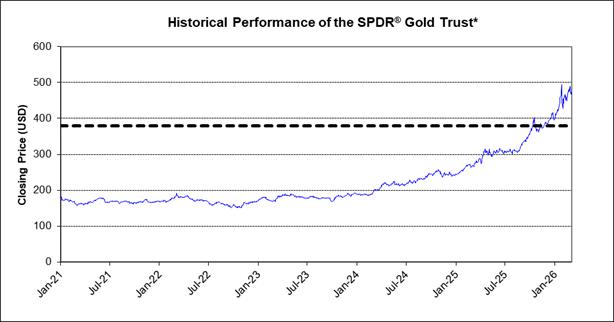 The graph below sets forth the historical performance of the GLD Fund from January 4, 2021 to March 6, 2026, based on the daily Closing Prices of the GLD Fund. The Closing Price of the GLD Fund on March 6, 2026 was $473.51.