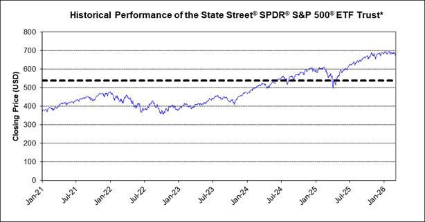The graph below sets forth the historical performance of the SPY Fund from January 4, 2021 to March 6, 2026, based on the daily Closing Prices of the SPY Fund. The Closing Price of the SPY Fund on March 6, 2026 was $672.38.