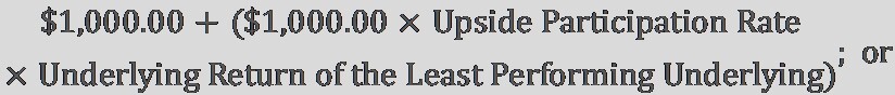 The Redemption Amount per $1,000.00 in principal amount of Notes will be: a) If the Ending Value of the Least Performing Underlying is greater than its Starting Value: