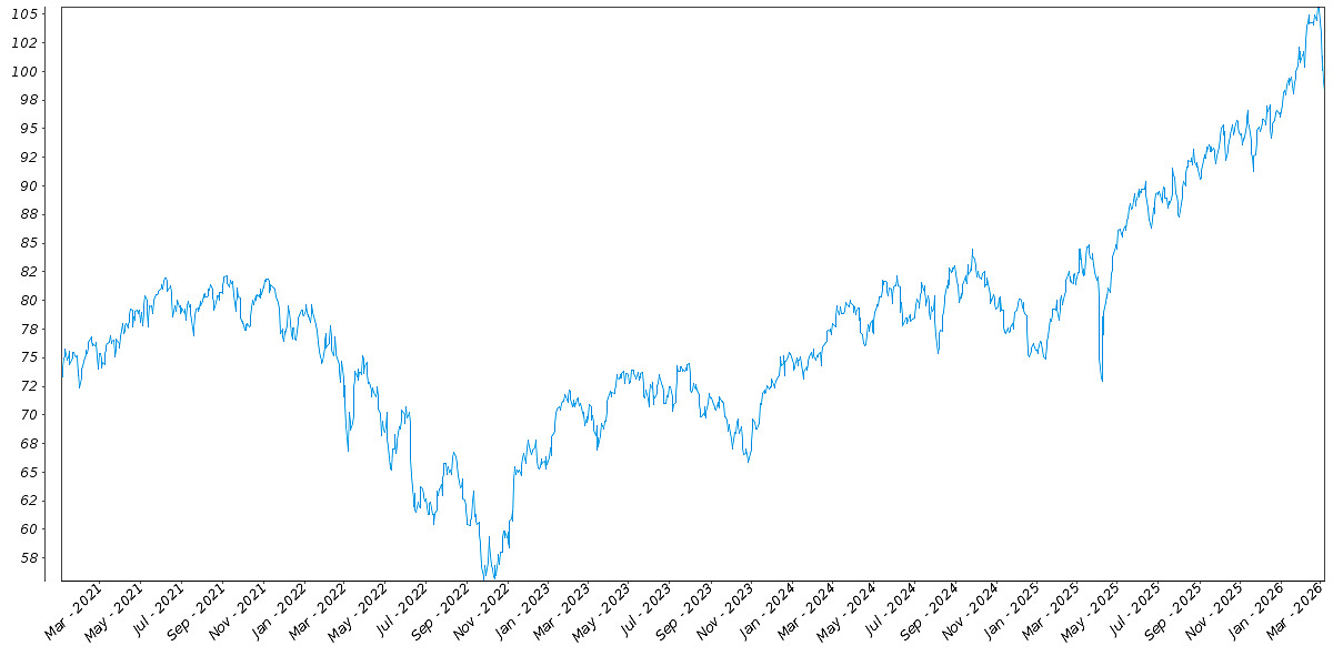 The following graph sets forth the daily historical performance of the EFA in the period from January 2, 2021 through the pricing date. We obtained this historical data from Bloomberg L.P. We have not independently verified the accuracy or completeness of the information obtained from Bloomberg L.P. On the pricing date, the Closing Market Price of the EFA was $98.28.