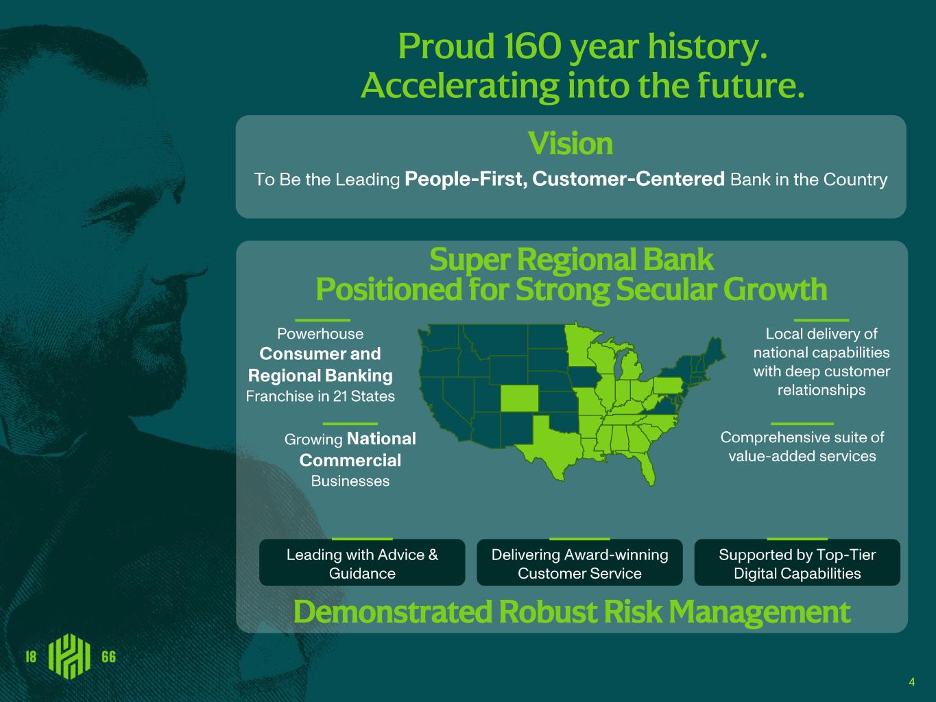 Abundant Green R: 126 G: 207 B: 28 Dark Teal R: 3 G: 79 B: 84 Pastel Teal R: 184 G: 239 B: 228 Pastel Magenta R: 248 G: 224 B: 229 White R: 255 G: 255 B: 255 Prosperous Sage R: 0 G: 45 B: 42 Primary Palette Off-White R: 245 G: 245 B: 245 Highlight Green R: 177 G: 238 B: 44 Legacy Green R: 45 G: 130 B: 42 Light Teal R: 121 G: 222 B: 226 Deep Sage R: 33 G: 72 B: 70 Highlight Teal R: 58 G: 204 B: 223 Charts/Graphs Palette Pastel Magenta R: 248 G: 224 B: 229 Dark Magenta R: 80 G: 16 B: 89 Highlight Magenta R: 193 G: 22 B: 216 Capstone Blue R: 4 G: 30 B: 66 Deep Magenta R: 144 G: 5 B: 163 Second Palette 2025 Fourth Quarter Earnings Review | Growing National Commercial Businesses Super Regional Bank Positioned for Strong Secular Growth Vision To Be the Leading People - First, Customer - Centered Bank in the Country Local delivery of national capabilities with deep customer relationships Powerhouse Consumer and Regional Banking Franchise in 21 States Proud 160 year history. Accelerating into the future. Leading with Advice & Guidance Delivering Award -winning Customer Service Supported by Top -Tier Digital Capabilities Demonstrated Robust Risk Management Comprehensive suite of value -added services 4