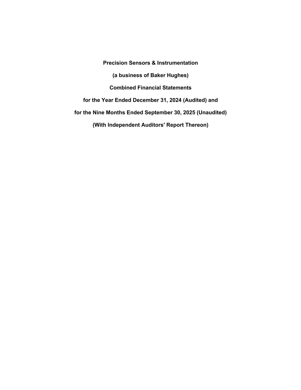 Precision Sensors & Instrumentation (a business of Baker Hughes) Combined Financial Statements for the Year Ended December 31, 2024 (Audited) and for the Nine Months Ended September 30, 2025 (Unaudited) (With Independent Auditors' Report Thereon)