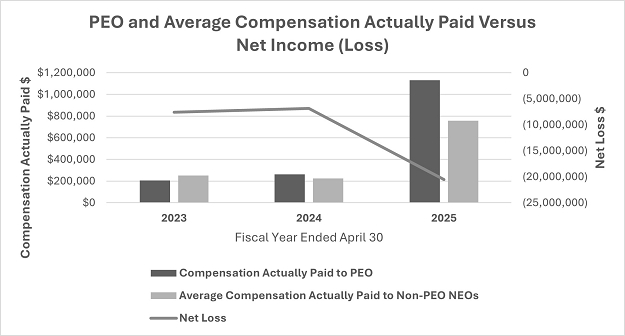The following chart reflects the relationship between the amount of “compensation actually paid” to Mr. Bee and the average amount of “compensation actually paid” to the Company’s NEOs as a group (excluding Mr. Bee), and the Company’s net income (loss) as reported under US GAAP, over the three years presented in the table. The Company does not use net income as a performance measure in its overall executive compensation program.