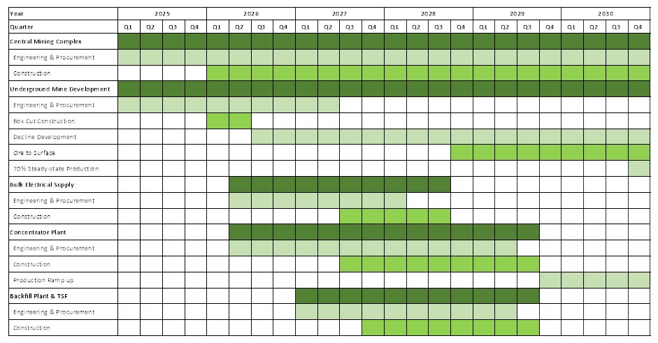 • the negotiation and execution of long-term access agreements, on reasonable terms, with communities recognized as titled landowners of three farms where surface and underground mine infrastructure is planned, and rezoning for mining use;