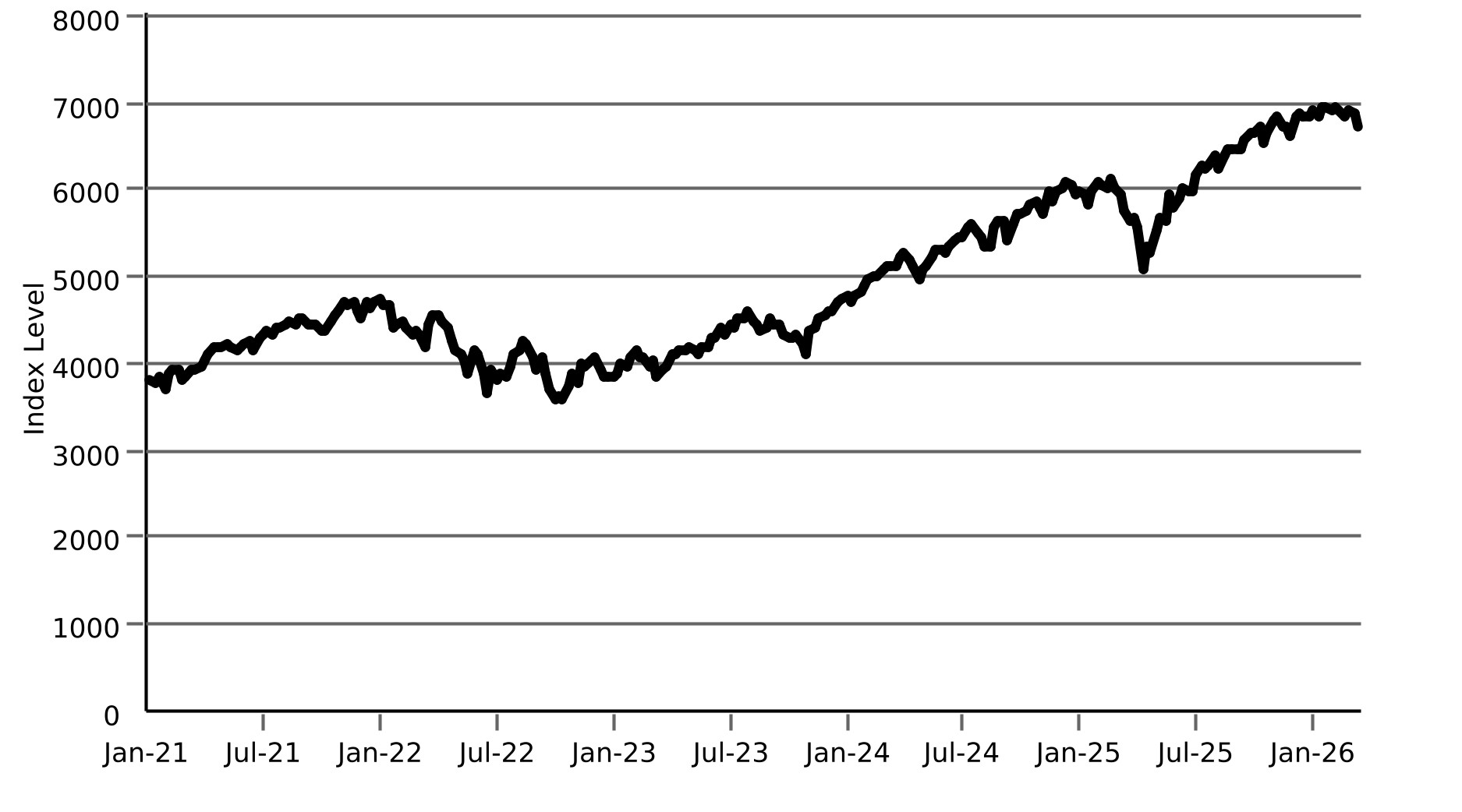 The following graphs set forth the historical performance of each Underlying based on the weekly historical closing values from January 8, 2021 through March 6, 2026. The closing value of the Russell 2000® Index on March 6, 2026 was 2,525.301. The closing value of the S&P 500® Index on March 6, 2026 was 6,740.02. The closing value of the State Street® Utilities Select Sector SPDR® ETF on March 6, 2026 was $46.74. We obtained the closing values above and below from the Bloomberg Professional® service (“Bloomberg”), without independent verification. The closing values of the Fund above and below may have been adjusted by Bloomberg for actions taken by the Fund, such as stock splits.