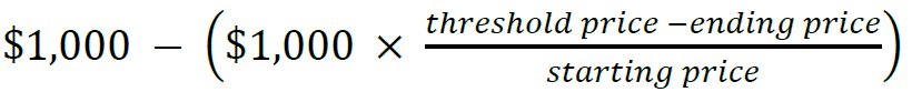 If the securities are not automatically called, you will be entitled to receive on the maturity date a cash payment per security as follows: if the ending price is less than the threshold price: |