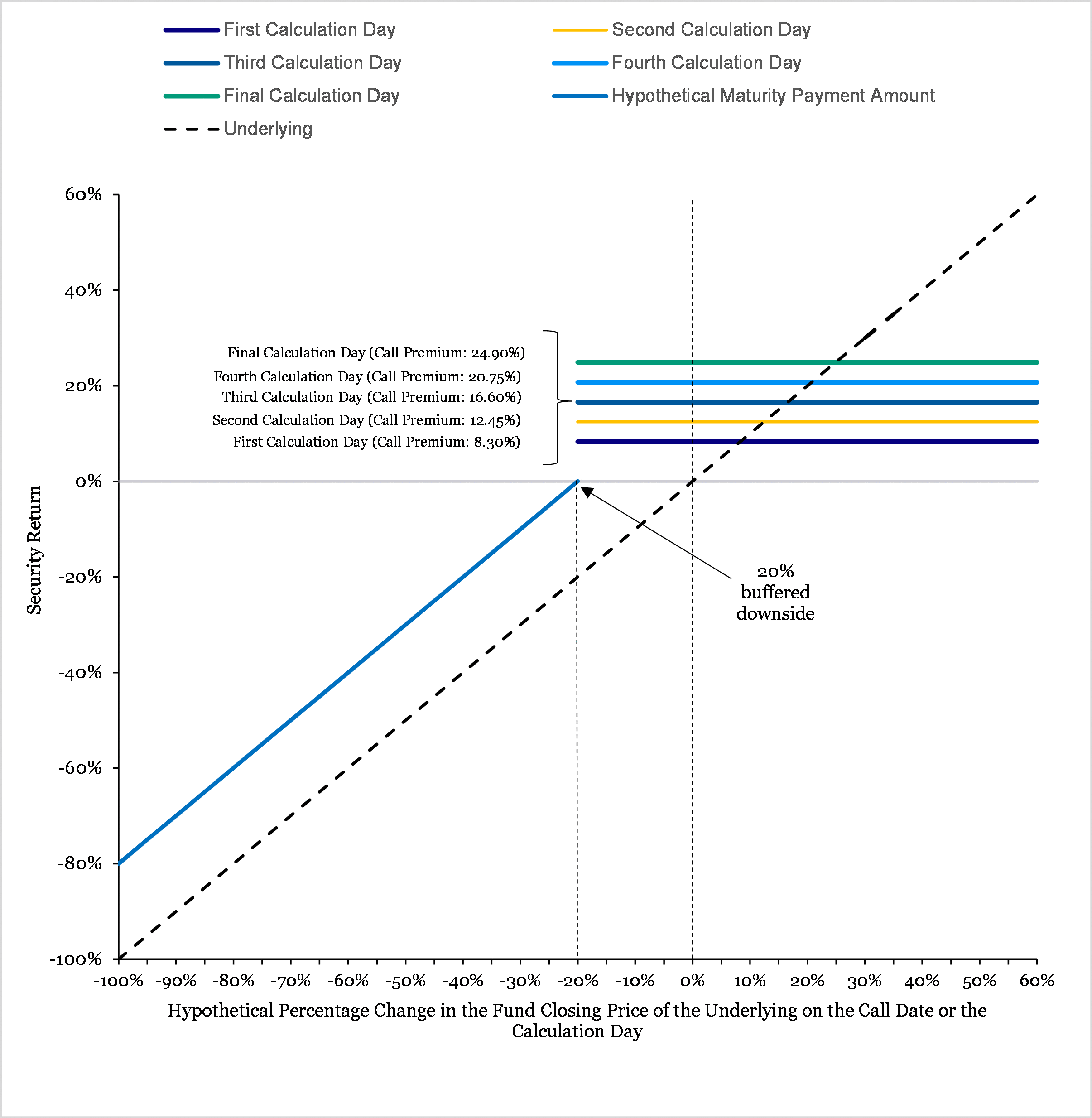 If, on any calculation day, beginning on April 6, 2027, the fund closing price of the underlying is greater than or equal to the call threshold price, the securities will be automatically called for the applicable call payment on the related call settlement date. |