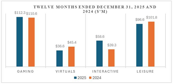 For the year ended December 31, 2025, our Gaming segment generated revenue and Adjusted EBITDA of $112.3 million and $55.0 million, respectively, as compared to the year ended December 31, 2024, during which we generated $110.6 million and $45.3 million in revenue and Adjusted EBITDA, respectively.