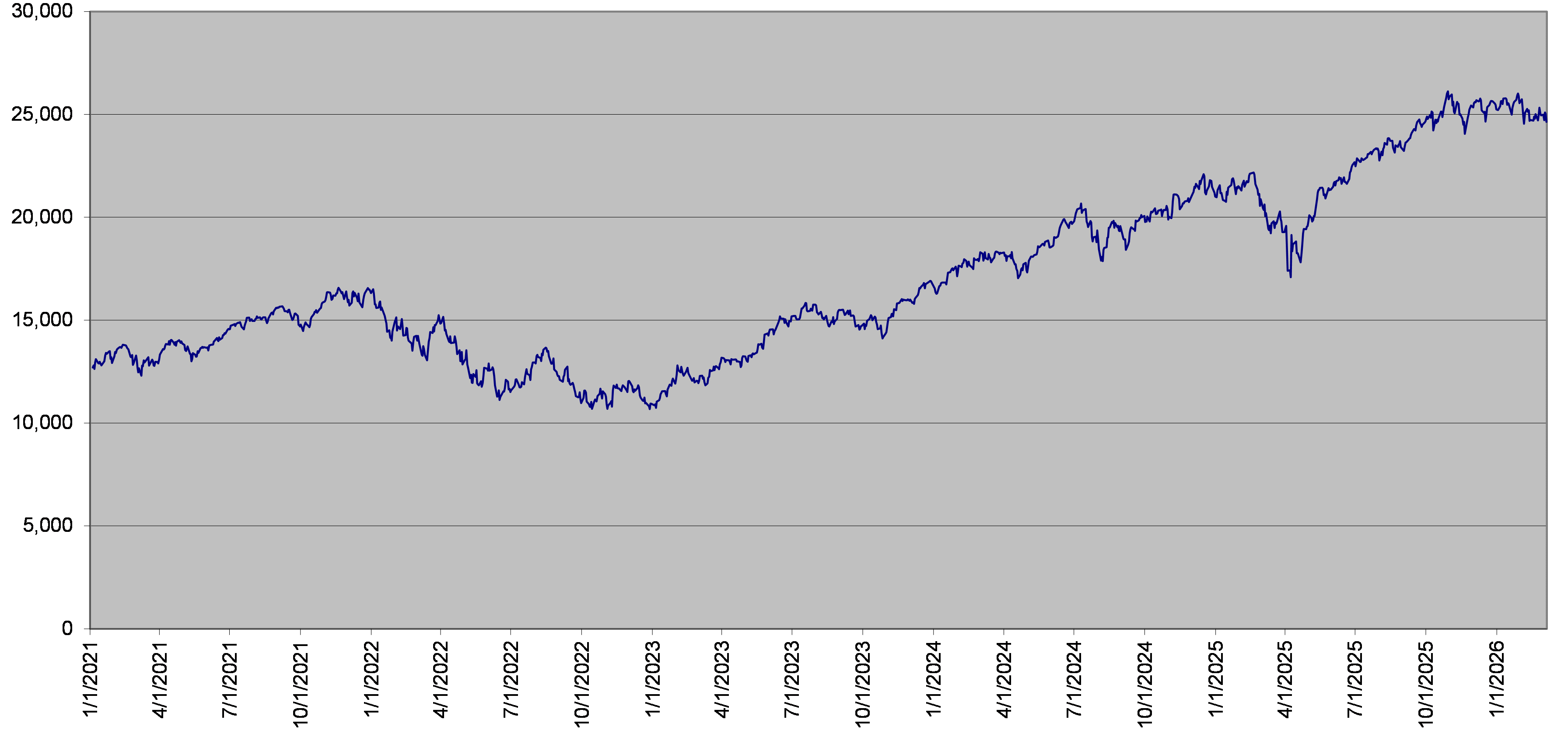 NDX Index Daily Closing Levels January 1, 2021 to March 6, 2026 |