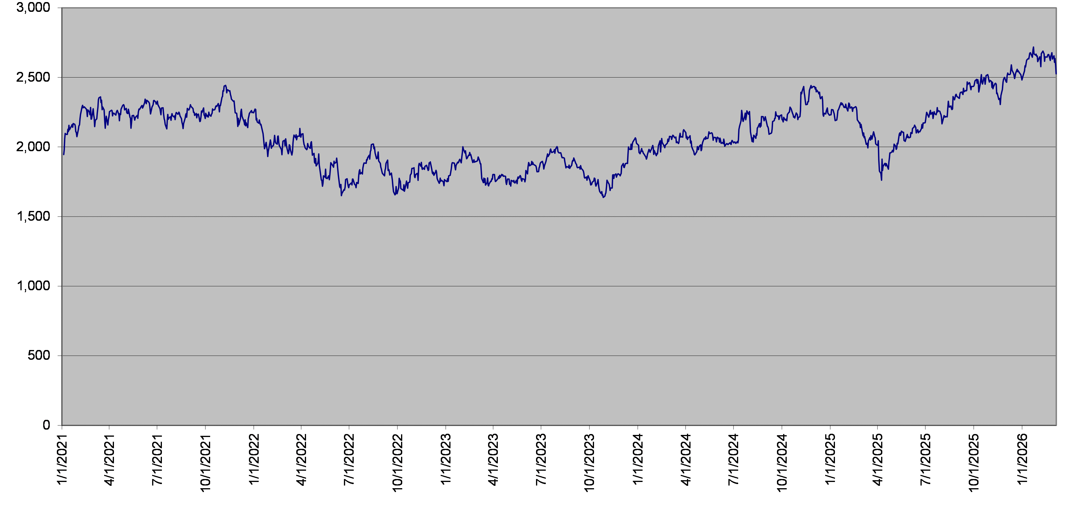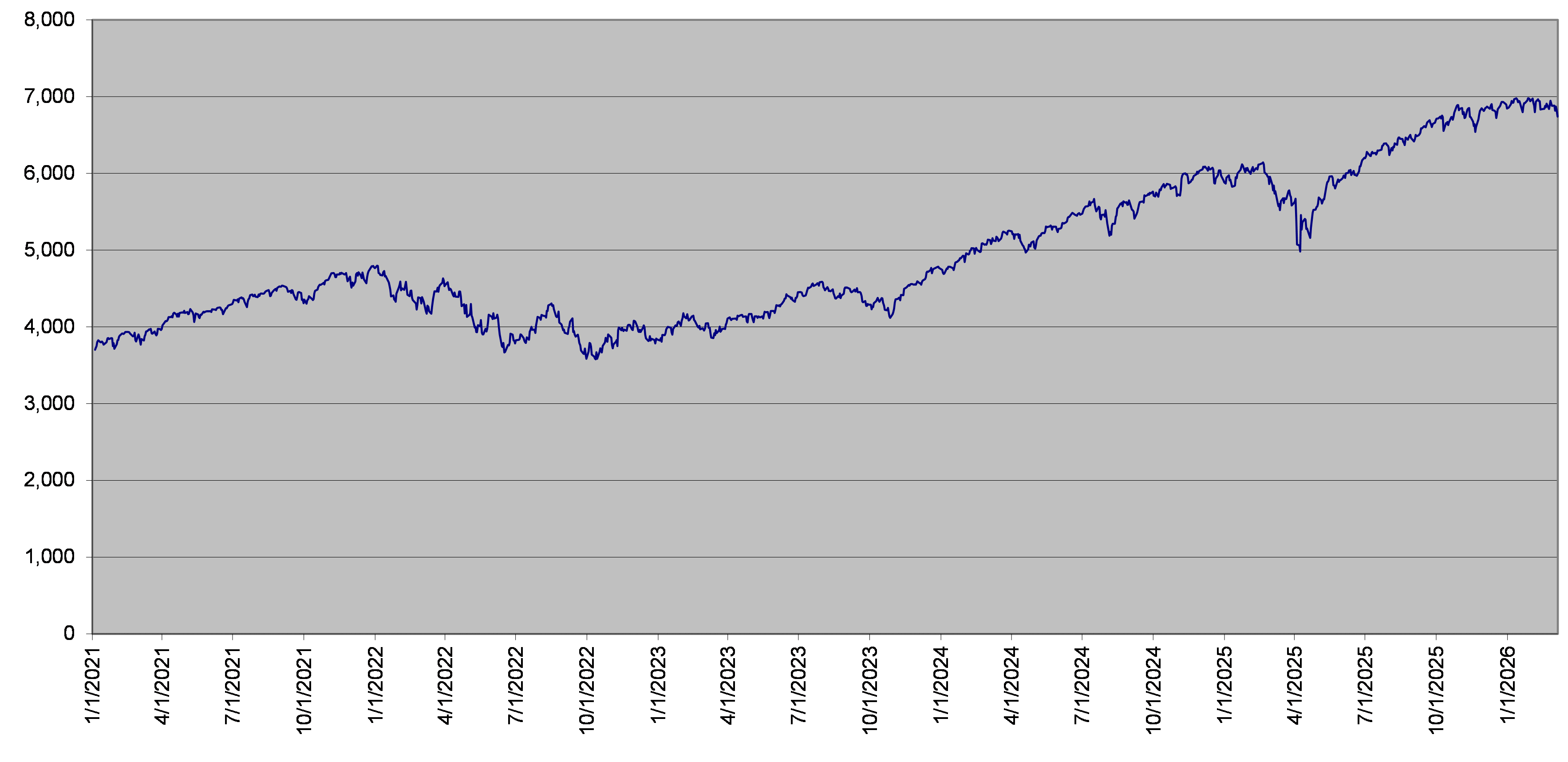 SPX Index Stock Daily Closing Levels January 1, 2021 to March 6, 2026 |