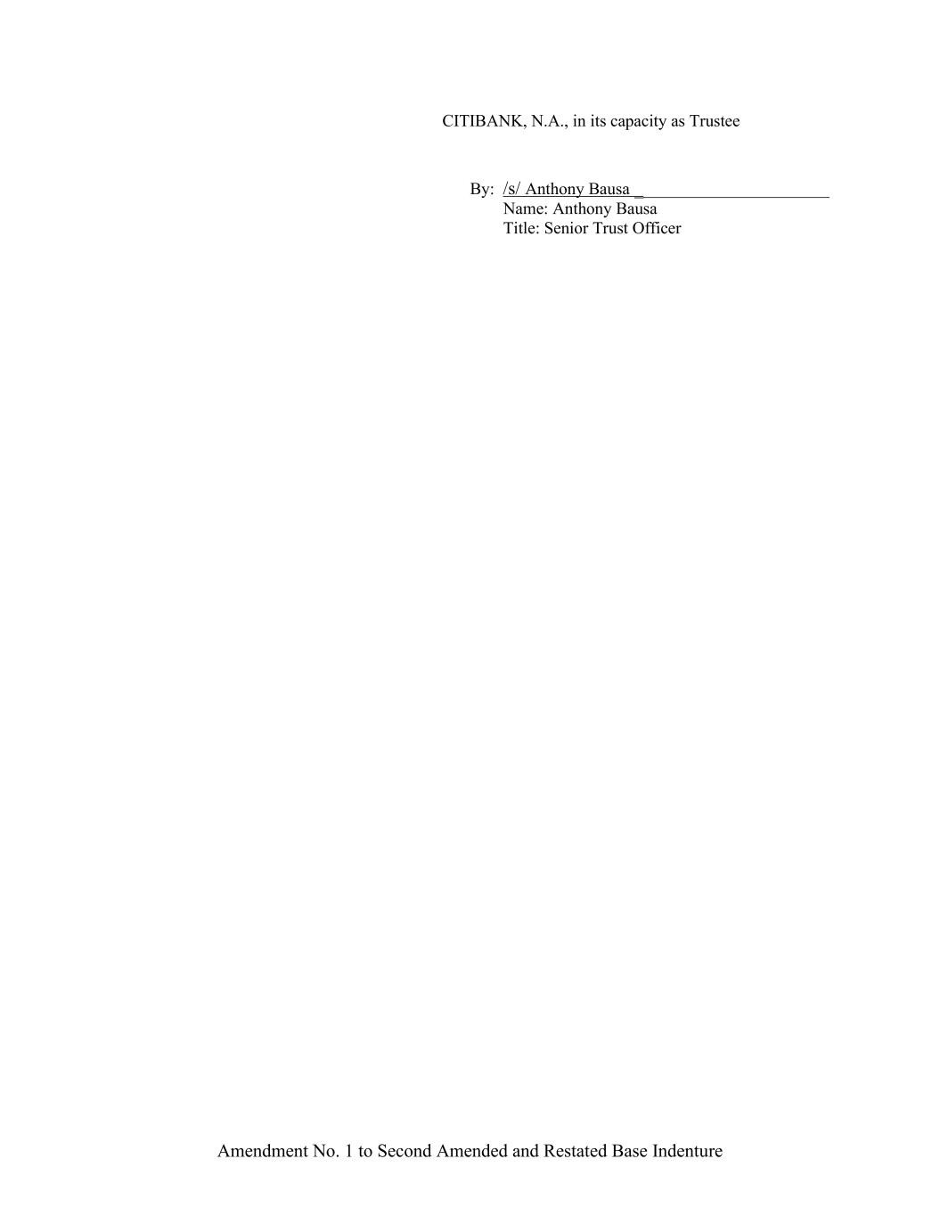 Amendment No. 1 to Second Amended and Restated Base Indenture CITIBANK, N.A., in its capacity as Trustee By: /s/ Anthony Bausa _______________________ Name: Anthony Bausa Title: Senior Trust Officer