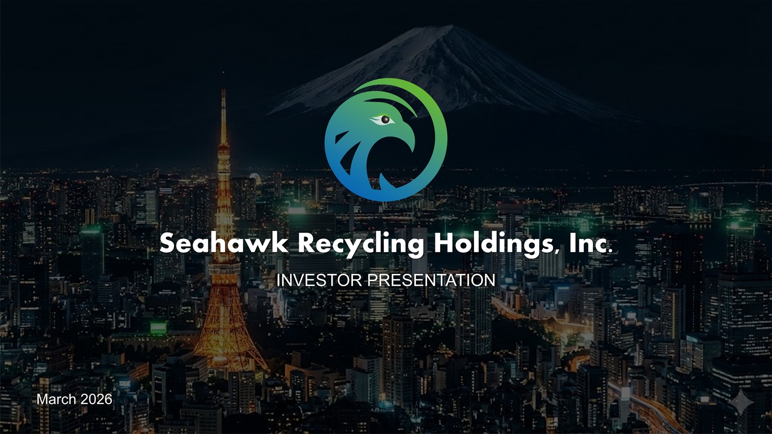 Seahawk Recycling Holdings, Inc. Issuer Free Writing Prospectus dated March 11, 2026 Filed Pursuant to Rule 433 of the Securities Act of 1933, as amended Relating to Preliminary Prospectus dated January 7, 2026 and filed with the U.S. Securities and Exchange Commission on January 7, 2026 Registration Statement No. 333 - 290518 INVESTOR PRESENTATION March 2026
