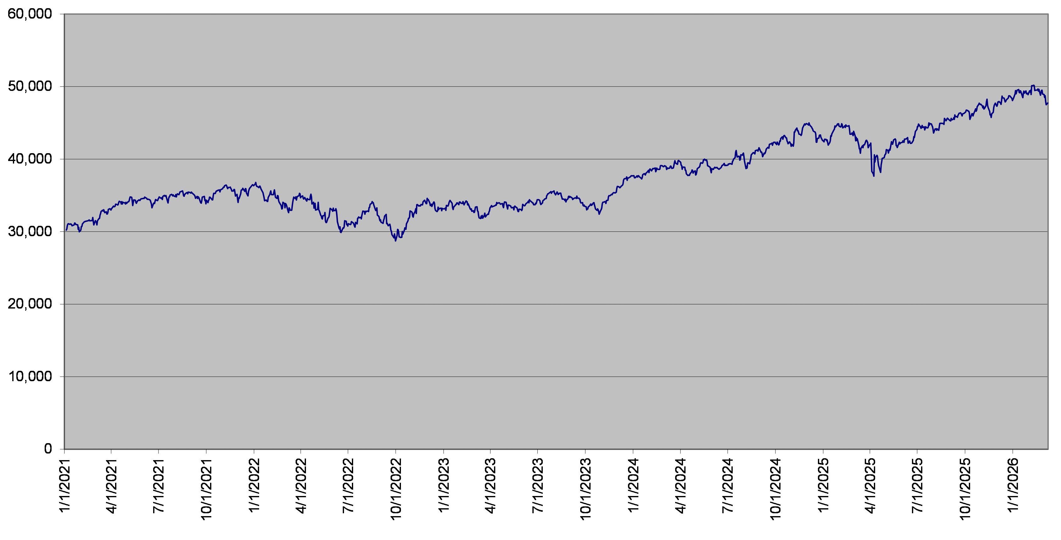 INDU Index Daily Closing Levels January 1, 2021 to March 9, 2026 |