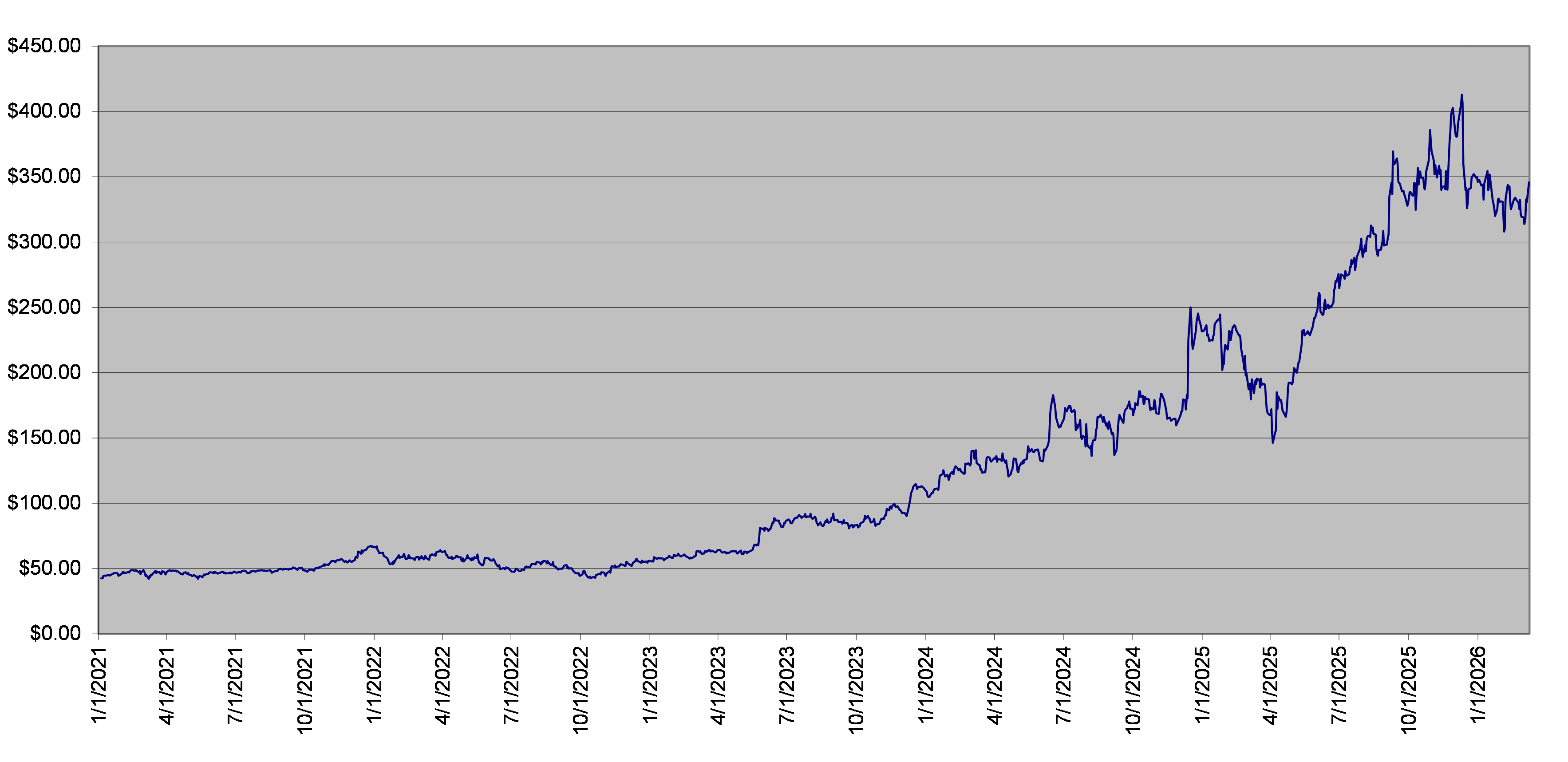 The closing level of the underlier on March 9, 2026 was $345.75. The following graph sets forth the daily closing levels of the underlier for the period noted below. We obtained the historical information presented in this document from Bloomberg Financial Markets, without independent verification. The underlier has at times experienced periods of high volatility. You should not take the historical closing levels of the underlier as an indication of its future performance, and no assurance can be given as to the closing level of the underlier at any time.
