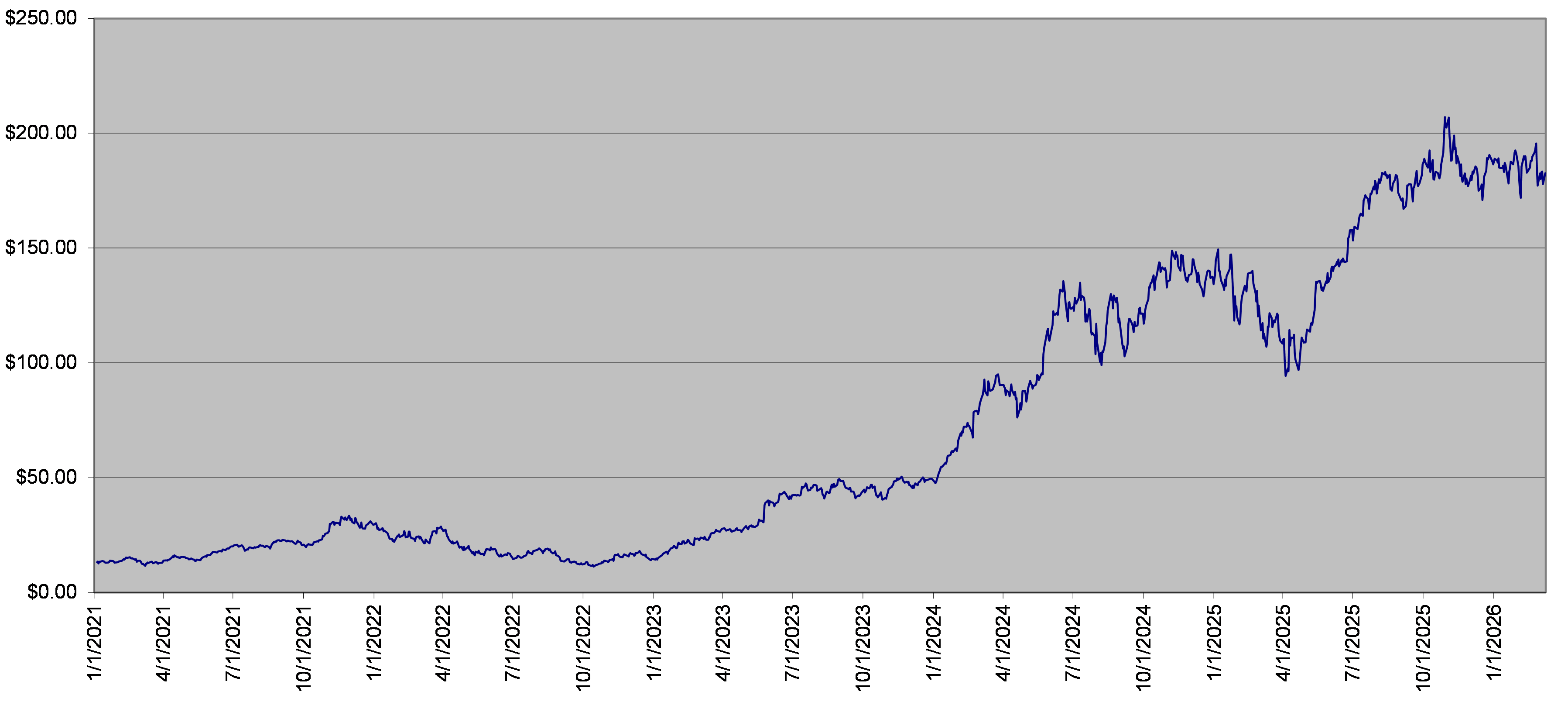 The closing level of the underlier on March 9, 2026 was $182.65. The following graph sets forth the daily closing levels of the underlier for the period noted below. We obtained the historical information presented in this document from Bloomberg Financial Markets, without independent verification. The underlier has at times experienced periods of high volatility. You should not take the historical closing levels of the underlier as an indication of its future performance, and no assurance can be given as to the closing level of the underlier at any time.