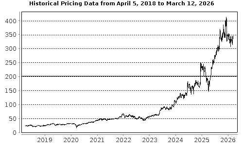 The graph below illustrates the performance of Broadcom's common stock for the period indicated, based on the daily closing levels as reported by Bloomberg, without independent verification. UBS has not conducted any independent review or due diligence of any publicly available information obtained from Bloomberg. The solid line represents its coupon barrier and downside threshold of $201.58, which is equal to 60.00% of the closing level on March 12, 2026. Past performance of the underlying asset is not indicative of the future performance of the underlying asset during the term of the Notes. |