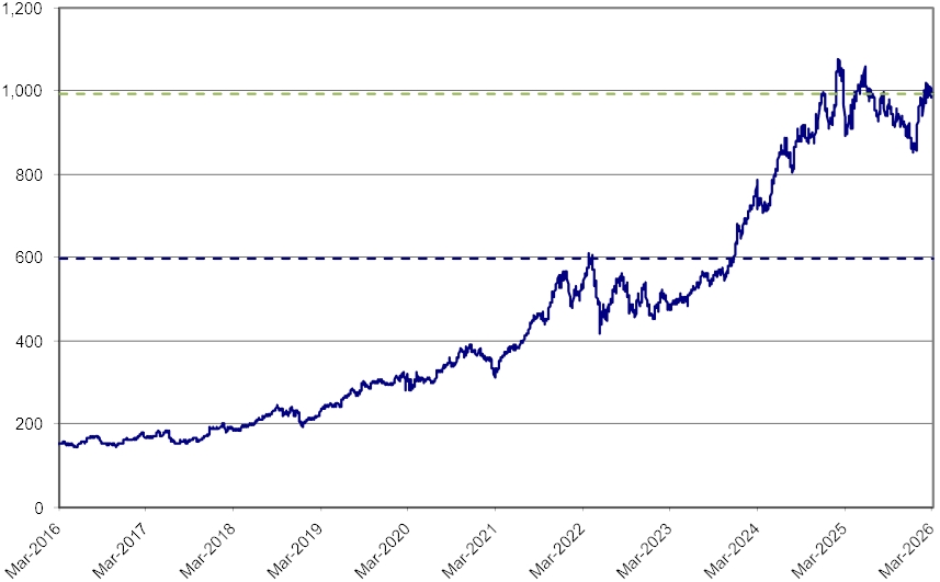 its Initial Value, calculated as follows: