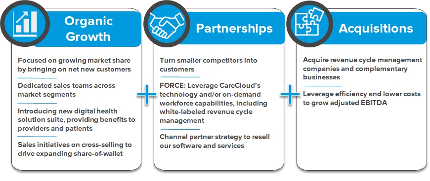 | ● | our ability to manage our growth, including acquiring, partnering with, and effectively integrating the recent acquisitions of MAP App, Medsphere Systems Corporation, RevNu Medical Management and other acquired businesses into our infrastructure and avoiding legal exposure and liabilities associated with our acquisitions; | |