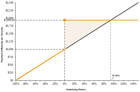 | Final valuation date | $1,000 + applicable premium = $1,000 + $936.00 = $1,936.00 |