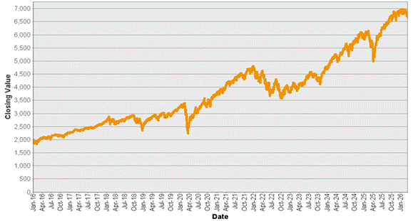 | S&P 500® Index – Historical Closing Values January 4, 2016 to March 12, 2026 |