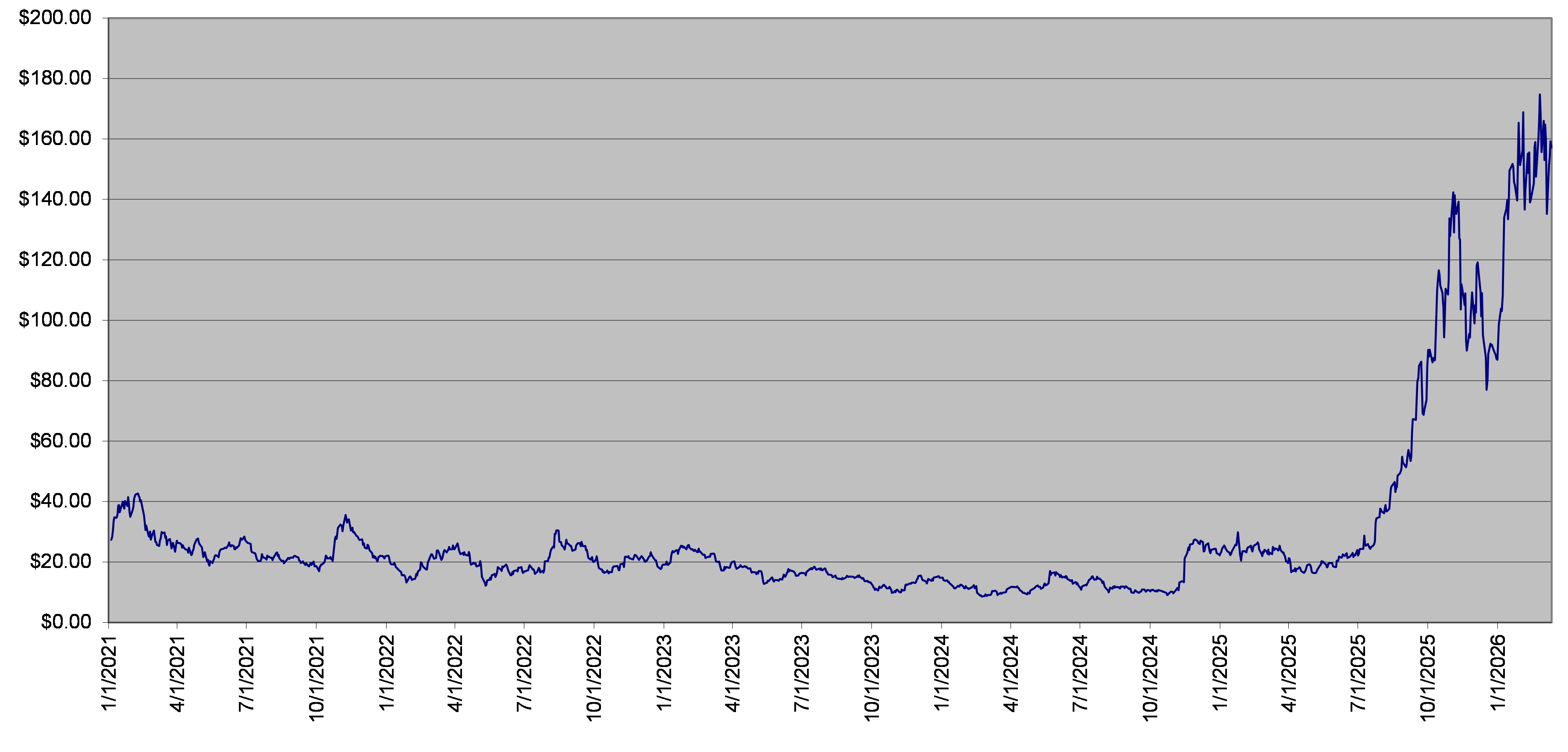 The closing level of the underlier on March 12, 2026 was $157.17. The following graph sets forth the daily closing levels of the underlier for the period noted below. We obtained the historical information presented in this document from Bloomberg Financial Markets, without independent verification. The underlier has at times experienced periods of high volatility. You should not take the historical closing levels of the underlier as an indication of its future performance, and no assurance can be given as to the closing level of the underlier at any time.