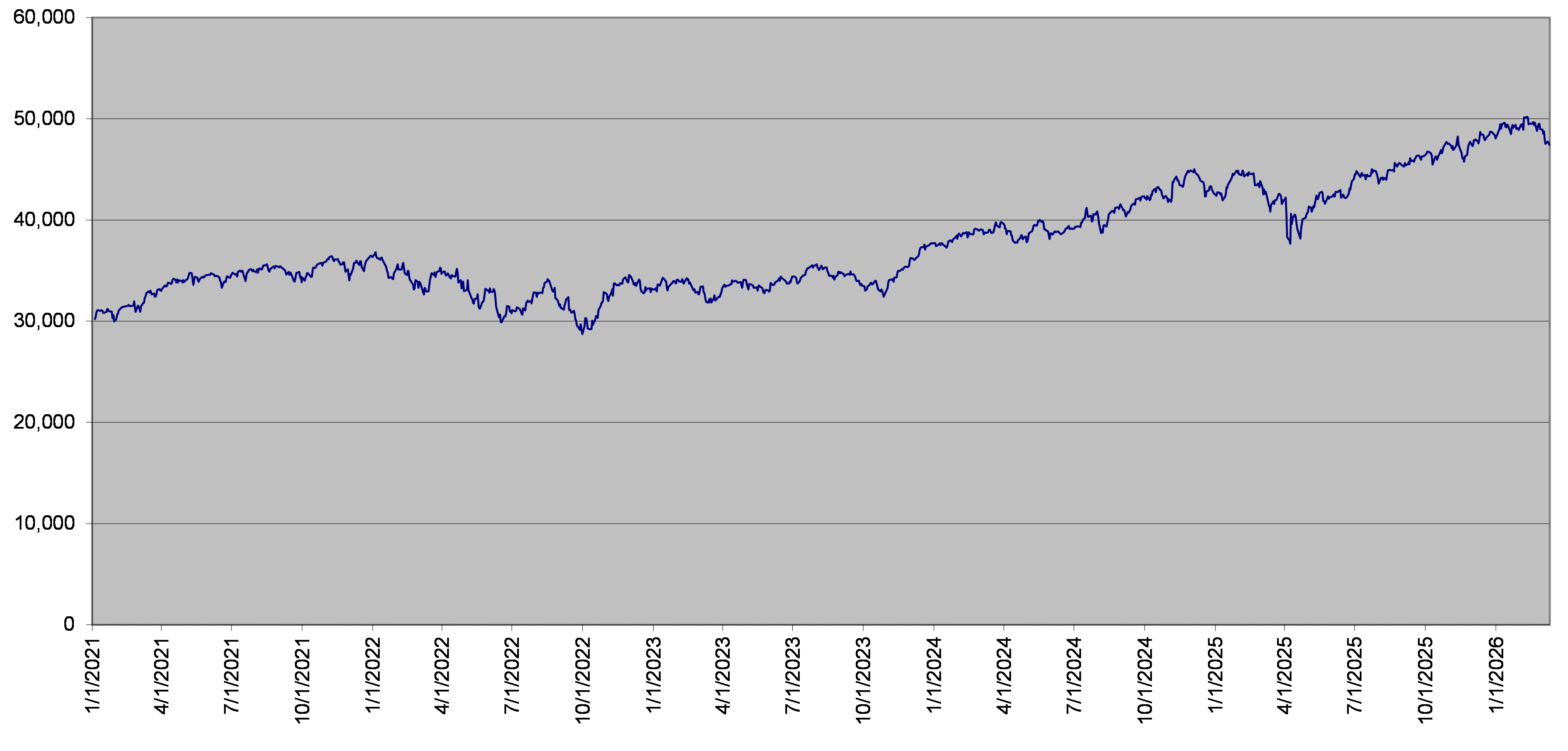 INDU Index Daily Closing Levels January 1, 2021 to March 11, 2026 |